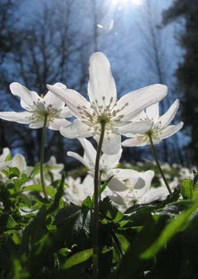 En backe full med vitsippor, i listerby skärgård, blekinge.