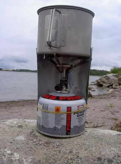 Har gjort vindskyddet av en öl burk, lättöl givetvis :-)! Fungerar hyfsat bra när det inte blåser alltför hårt...