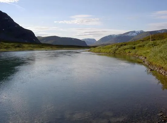 Stilla flyter Tjäktjajåkka..