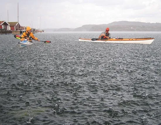 Härligt skärpedjup, snygga regndroppar, sannt gråvädersporträtt. Att paddla kajak tycker jag är en av de minst dåliga sysselsättningarna i regn, cykla en av de mest.