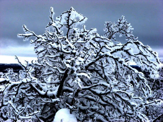 Vacker fjällbrjörk som jag fotade under v 10 i år. Lägg märke till de 3 cm långa snökristallerna som sträckte sig ut från björken likt en kaktus (!).