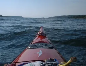 Bilden tagen fron sittbrunnen i min Pont65, jag är på väg ut från Härnösand via Södrasundet mot öppet hav. När jag tog bilden så höll det på blåsa upp och våghöjden steg ganska raskt till ca 2 meter. Blev härlig surfning på vägen tillbaka.