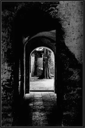 En av många gångar o öppningar i slottsruinen.