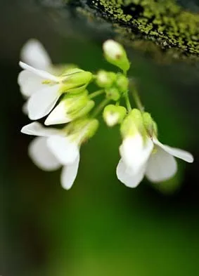 Vita blommor mot sten