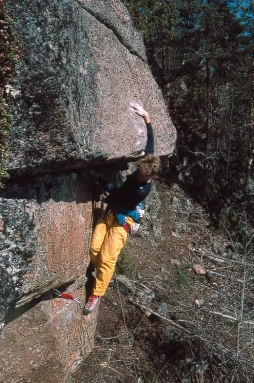 Kent Andersson på Jupiter (6+/7-), Mörkberget, Hälsingland, 1986.