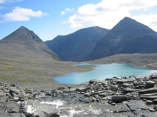 Foto av Stuor Reiddavaggi och sjön 1078, taget från Sielmmavaggi. Berget Nallo till vänster.