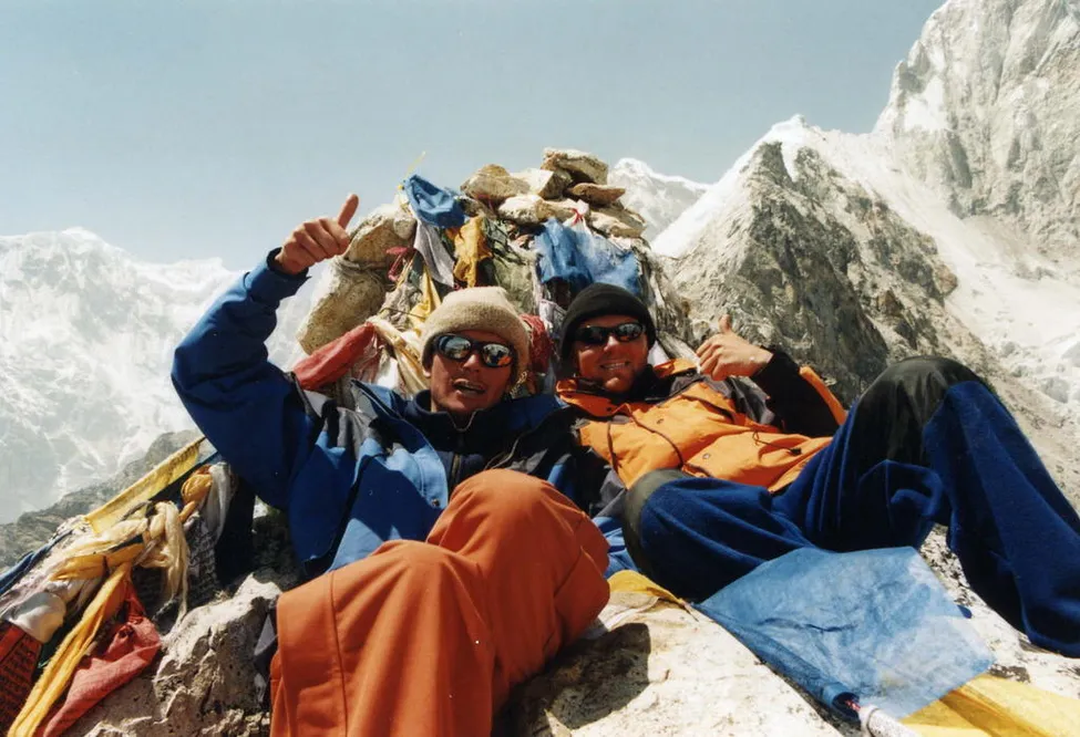 Jag och Johan på toppen av Kala Patthar 5600 möh.