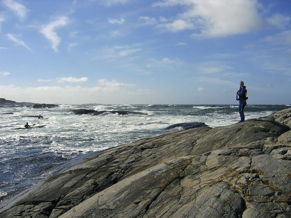 Pia står och blickar ut över Vallerösundet. Stockenträffen 07