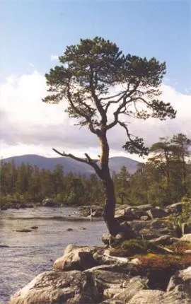 På ensamvandring længs ælven Røa i Femundsmarka i september 1999, ær man glad før vackra vyer att fotografera nær inte længre fisket ær tillåtet.