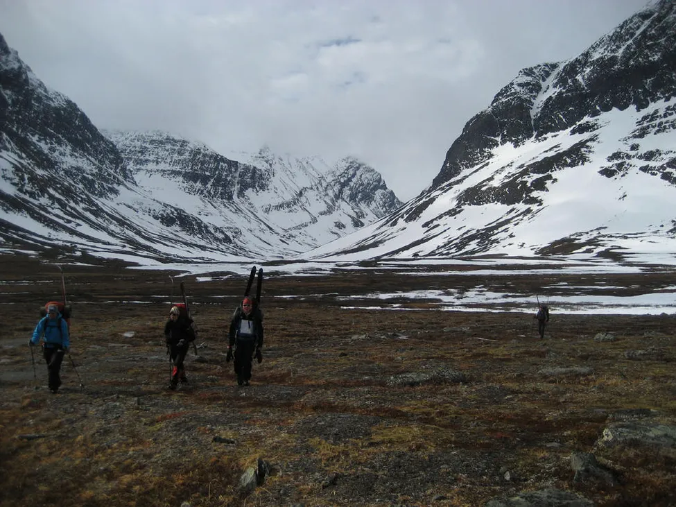 Vi åkte från Singi till Kebne den 20/4 men vi hade turen att det snöade 10 cm på natten så vi kunde åka ända fram annars hade vi också fått bära 6 km. Jag förstår känslan ni hade.
