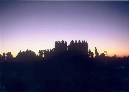 Besökare i väntan på soluppgång över annapurna bergen.