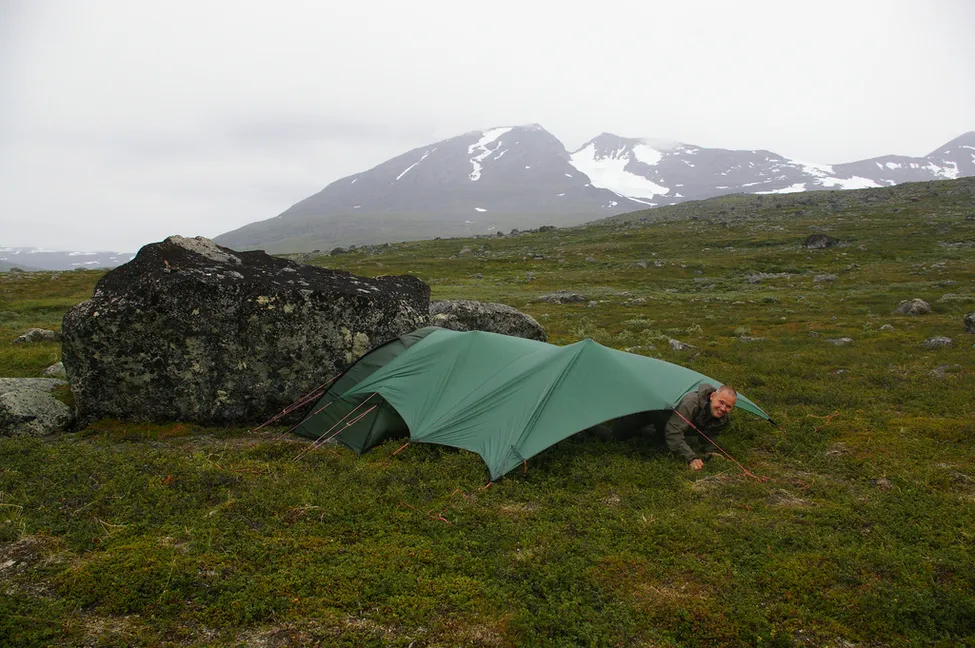 HB tarp köpt på outleten på Frösön så hyfsat billigt. Joakim, vi är två som sover i Unnat, så det är ganska lätt ;)
