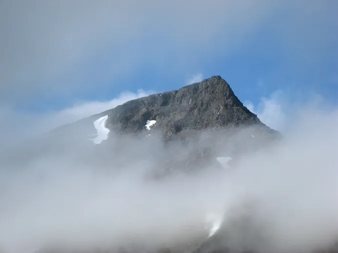 Jag gillar sådana här bilder, fjälltoppar i moln. Vad är det för fjälltopp?
