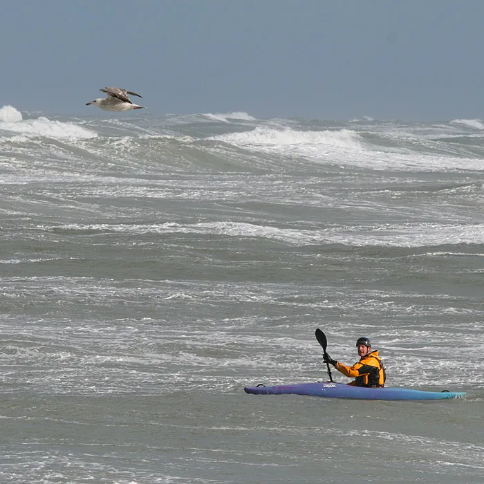 Oj, vad är det för kajak? Ser ut som en urgammal forskajak vi har i klubben. Är det en speciell surfkajak? jag blir sugen när jag ser bilden, fin bild