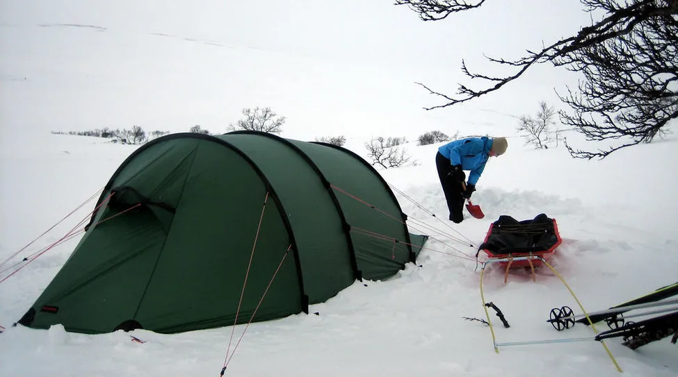 Bilden får mig verkligen att längta till vintern. Det är något speciellt med vintertältning.