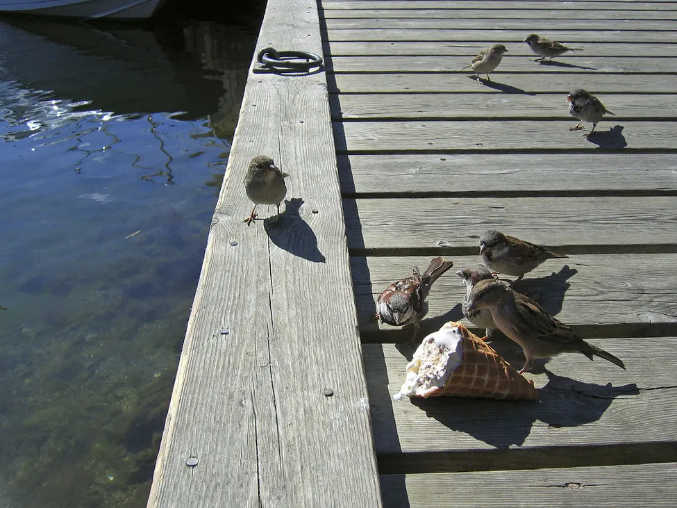 Lömska gråsparvar äter upp min glass bakom ryggen när jag matar deras kompisar..