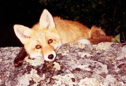 Nöjd rävunge efter en stulen måltid av Oboy-pulver, margarin och en bit liggunderlag.