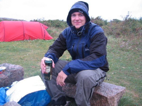 Öl smakar bra, trots regn och vind.