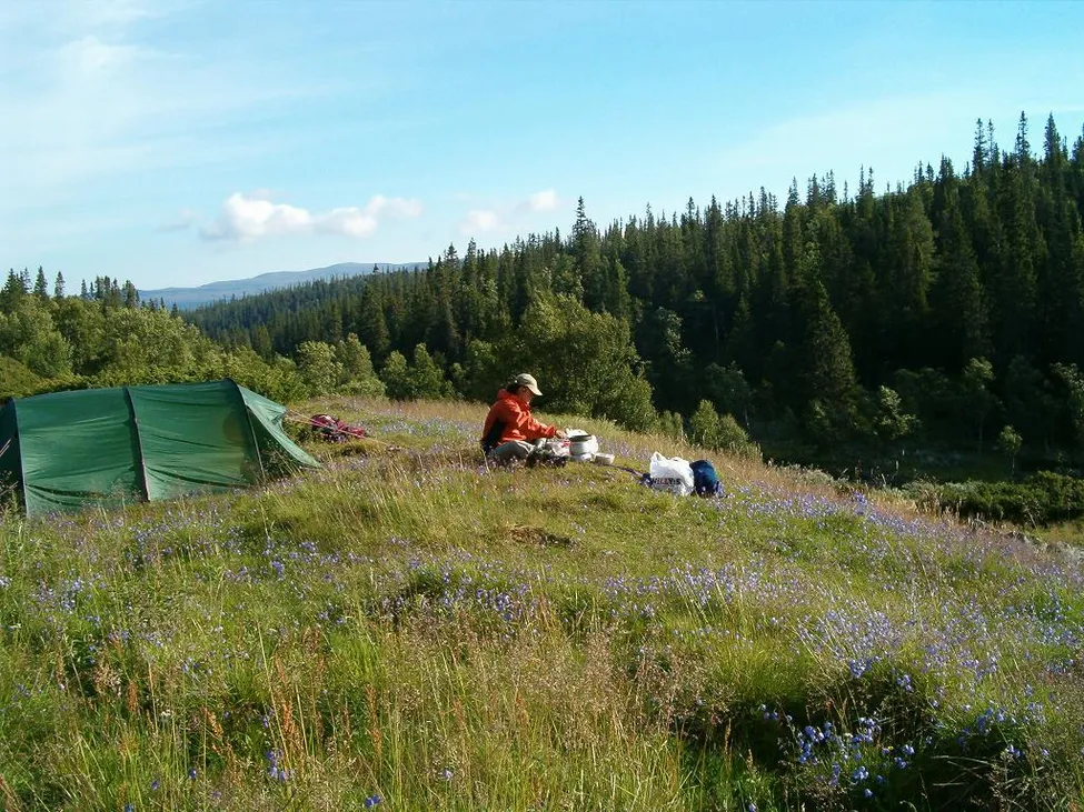 Kanske inte vad jag hade räknat med på en fjällvandring, men det var underbart att övernatta på en mjuk äng av blåklockor, och somna till forsens brus.