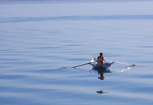 Läckert! Effektfullt utan kölvatten. Men vem har tagit bilden, det måste du ju skriva ;-) (eller är det inte du i båten?)