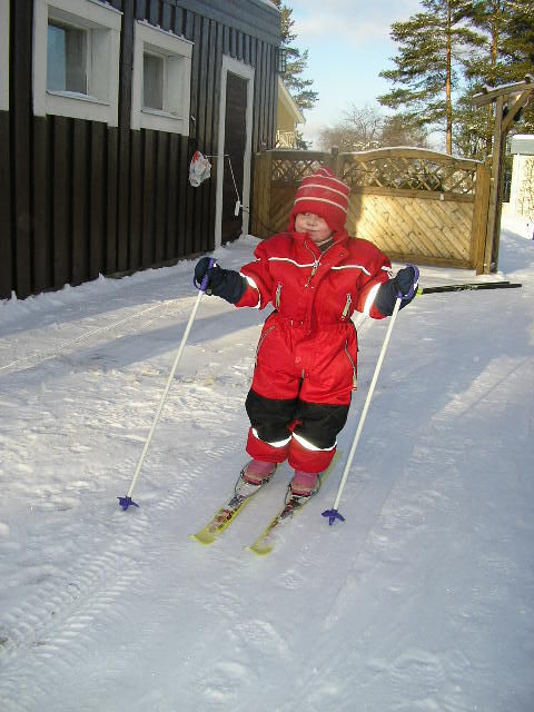 Och hon åker skidor redan