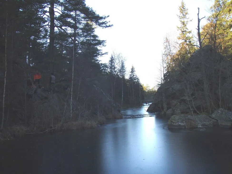 En 1,5 m bred isbrygga med ca 4 cm kärnis med kärnis under 2 cm utanför höll inte utan resulterade i ett plurr. Ombyte pågår....