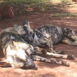 Två vildhundar vilar i skuggan en mycket het novemberdag 2006.