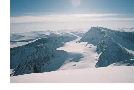 Bilden är tagen vid en topptur i april 2001. I bakgrunden kan man se Stor-, Isfalls- och Kebnepakteglaciären. Vi åkte ner via Lilietoppsrännan.