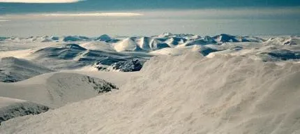 Bilden tagen från sydtoppen och Norska fjällen ses från toppen vid klart väder.