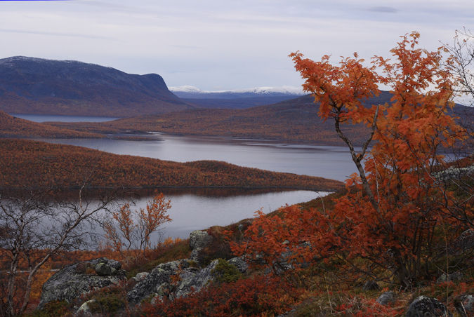 Så vackert, vattnet, höstfärgerna och de snöpudrade topparna i fjärran! Inte konstigt man längtar till fjälls...