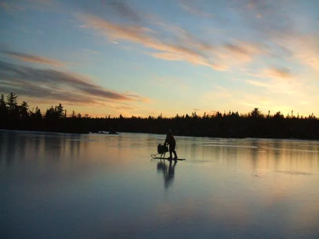 Sunset on ice at Cranberry Lake