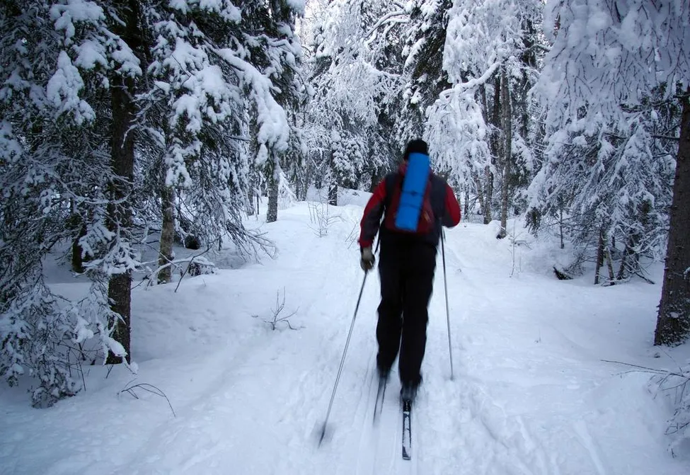 Härlig vinter. Bilden ger också en bra närvarokänsla med grenarna som hänger in över spåret.