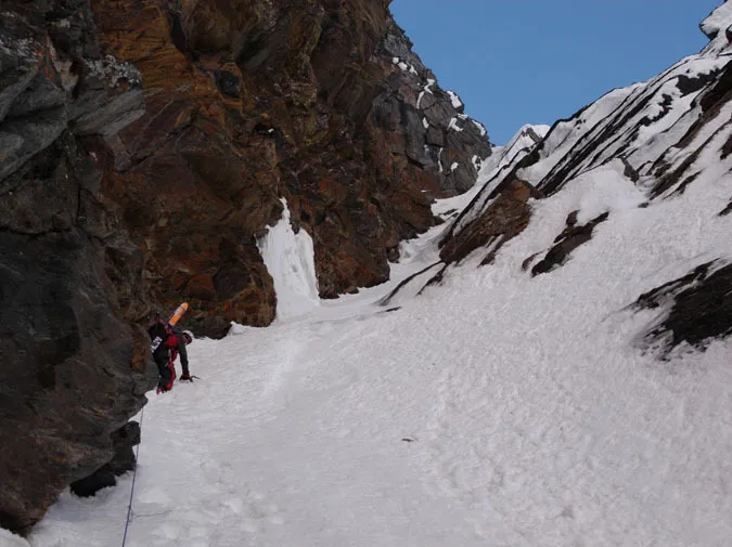 Tur vi hade fullt alpinkitt med oss, isskruvar, stegjärn och isyxor.