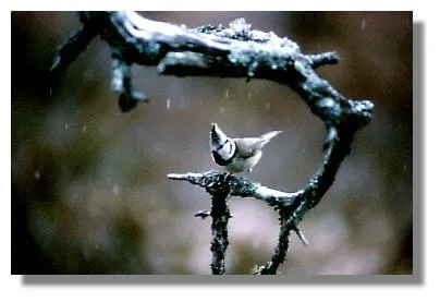fin komposition ger djup i bilden, gillar även den "rörelse" som finns i bilden...det ser ut som om tofsmesen precis är på väg att lyfta...en mycket fin bild!