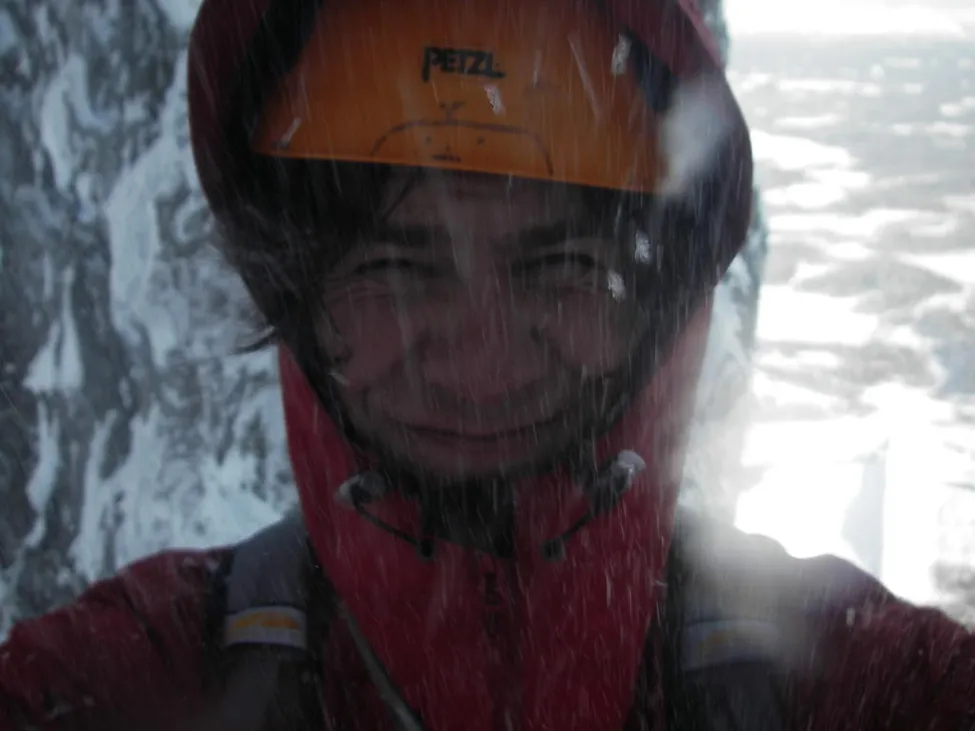 Vid första isbouldern på väg upp i rännan. Det flög lite is och snö...