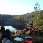 Som jag ahr längtat efter att få snöra på mig kängorna. Detta är en bild tagen från ett nattläger vid en liten sjö längs Bohusleden. 15 meter dropp ner till vattnet 1 meter från lägerelden. Härligt!