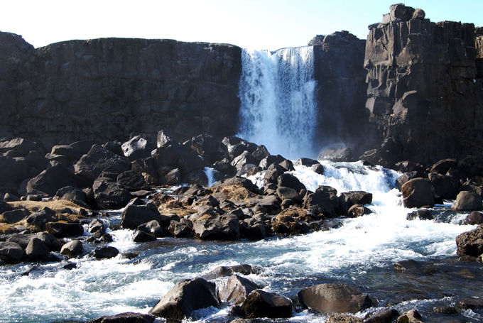 Vattenfallet Öxaráfoss vid Thingvellir på Island.