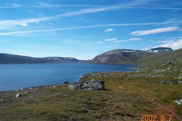 Visst är det en fin sjö, men bilden föreställer faktiskt Vájmok och inte Bieskehávrre. Vájmokbáktes klippbrant i bakgrunden känns lätt igen.