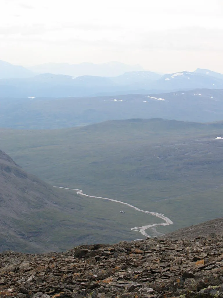 knapt halvägs. det märks att fjället är högt. man ser viterskals stugan 500 meter ner.