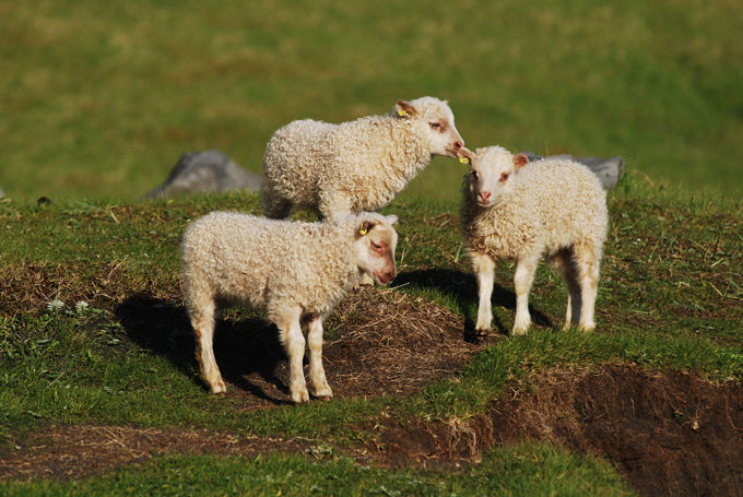 Små lamm, nyligen utsläppta på sommarens grönbete