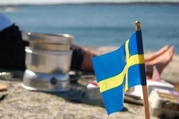 Härlig bild med skärpan på flaggan som verkligen hamnar i fokus. Sen bidrar ju den sköna sommarbakgrunden till en varm och somrig stämning. (Tror att det är första gången jag sett en äggkartong med i picknickpackning...)