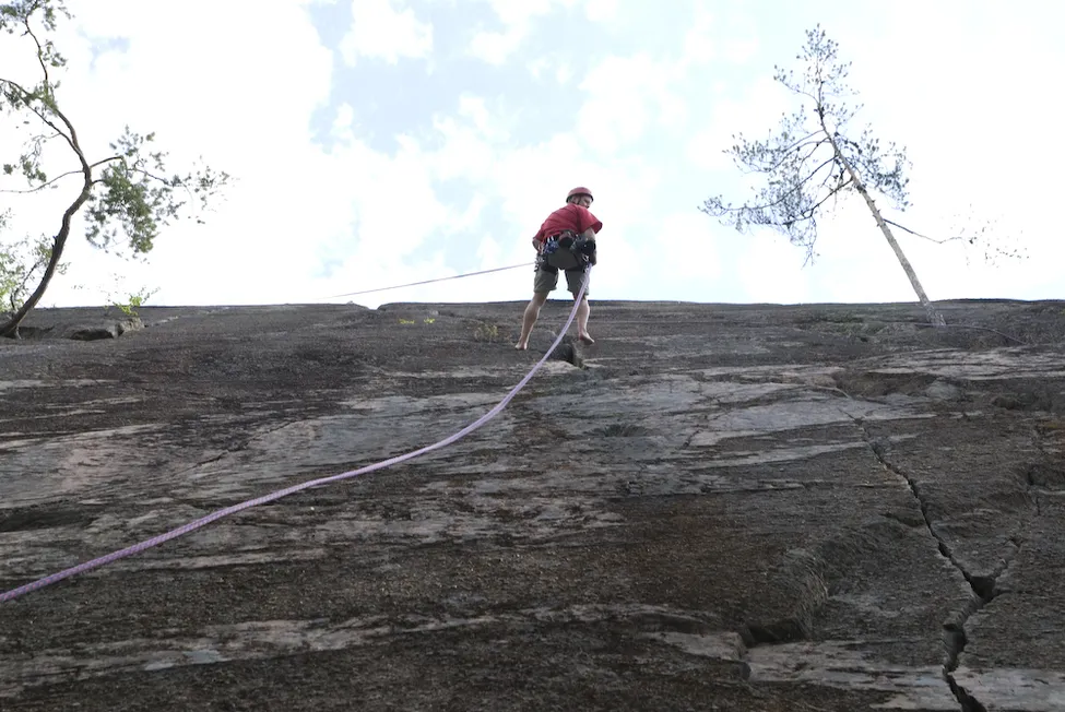 Andreas firar ner sig från stora väggen på Mörkberget efter att ha lett Combat 5-.