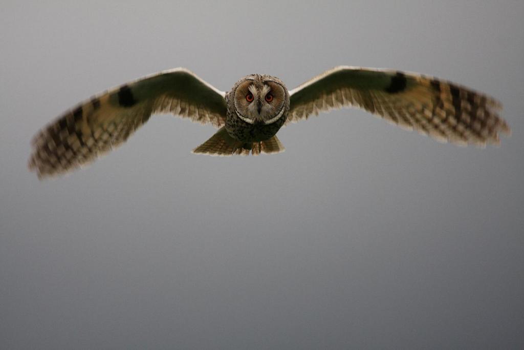 Mycket tjusigt. Ugglor är ju väldigt mäktiga, och det blir extra grädde på moset att den tittar så rakt in i kameran. De suddiga vingarna ger lite fart åt bilden också.