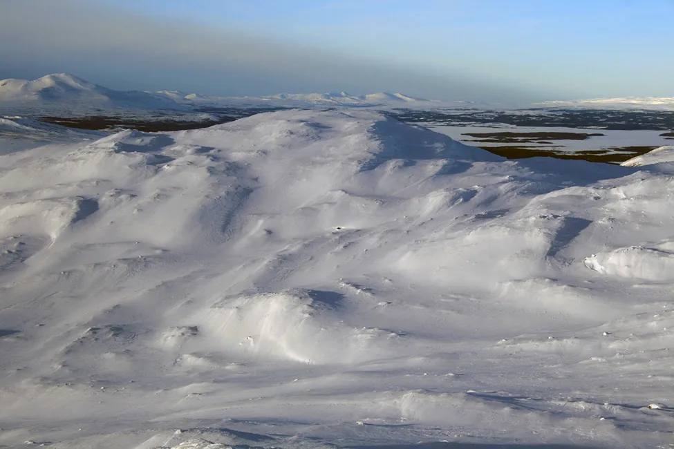 På toppen av Ottfjället. Den svarta pricken i mitten är vårt tält.