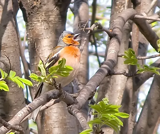 Fin fågel. Gillar dom gröna löven och gråa stammarna till.