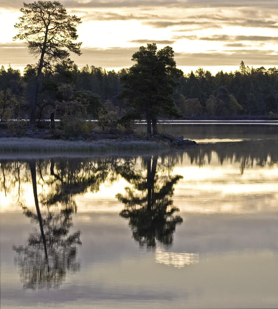 En vandring i Rogen tidig höst morgon. Solen smeker sig upp över över trädtopparna.