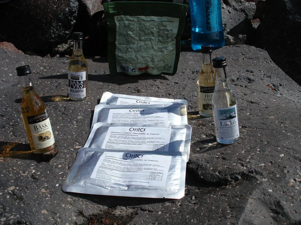 Midsommar middag på 3700m vid östra foten av Elbrus uppe på lavaklipporna. Läger 3.