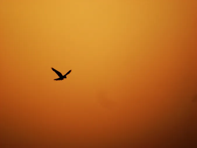 Ryttlande tornfalk i solnedgång i Kvismaren.