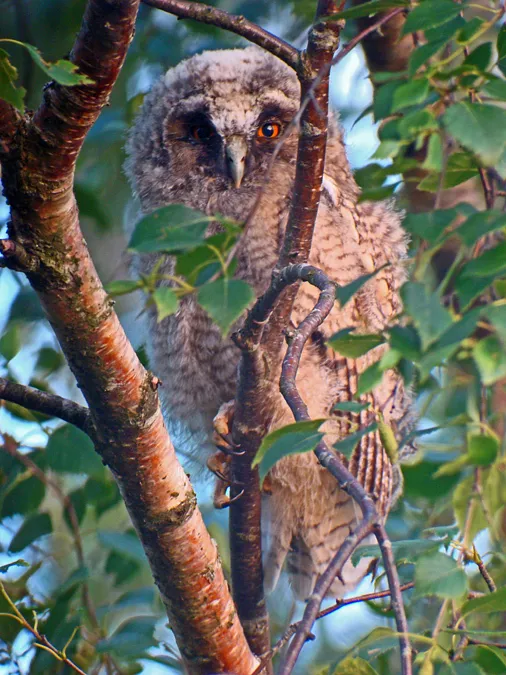 En av dom tre hornuggleungar som finns i kullen i Kvismaren.