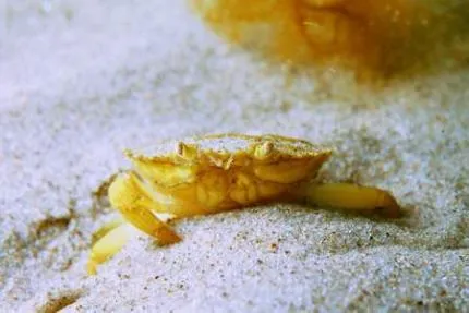 Krabban försökte gömma sig genom att gräva ner sig.